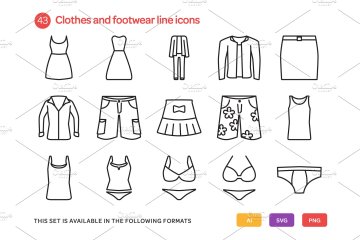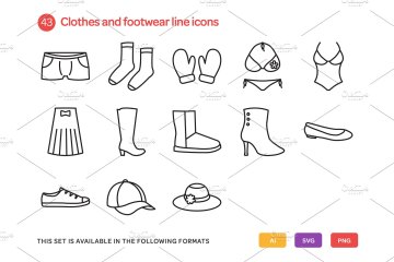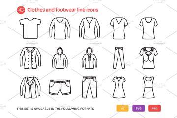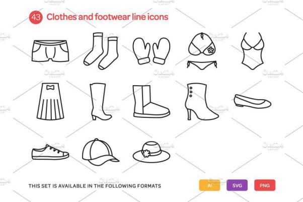 图穷联素材库 » 服装类线型图标套装 Clothes and Footwear Line Icon