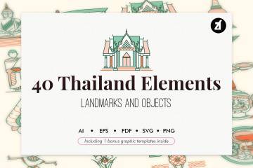 40款泰国地标元素矢量图标素材 40 Thailand elements wit
