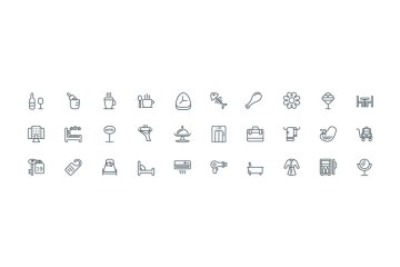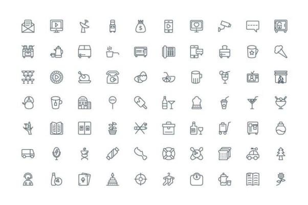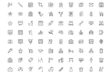 图穷联素材库 » 酒店旅馆主题线条图标 390 Hotel Line Icons
