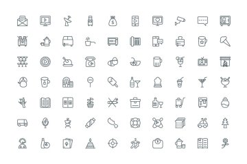 酒店旅馆主题线条图标 390 Hotel Line Icons