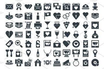 浪漫爱情元素矢量图标Love and Romance Vector Icons