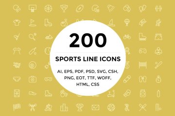 图穷联素材库 » 体育主题运动系列图标 200 Sports Line Icons