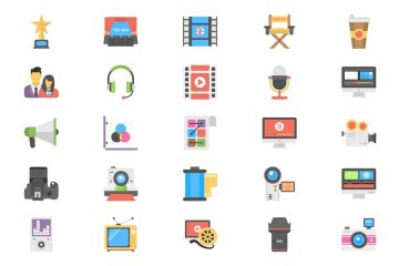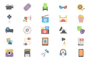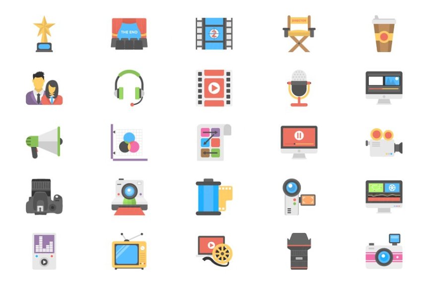 图穷联素材库 » 扁平设计风格电影 Flat Film Making Icons