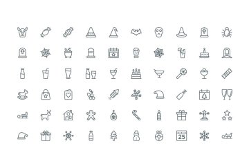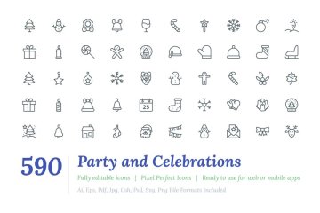 图穷联素材库 » 派对和庆祝活动线条图标 Party and Celebrations
