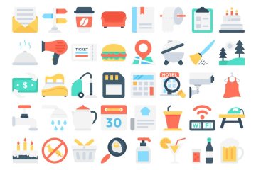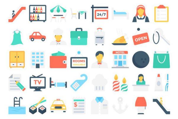 图穷联素材库 » 扁平设计风酒店&餐馆图标 Flat Hotel and Restaurant