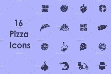图穷联素材库 » 披萨美食icon图标 16 PIZZA simple icons