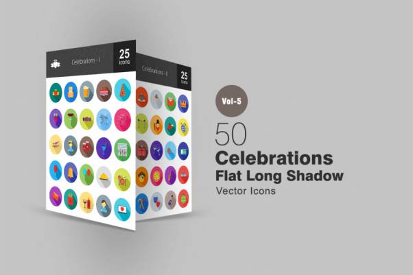庆祝主题长阴影圆形图标素材 Celebrations Flat Shado