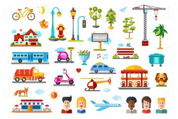 城市生活主题矢量扁平化设计图标合集 Urban objects