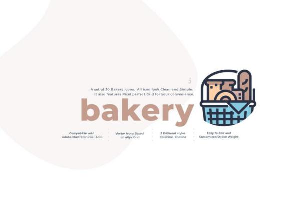 图穷联素材库 » 面包店蛋糕矢量图标合集 30 Bakery Icon Set