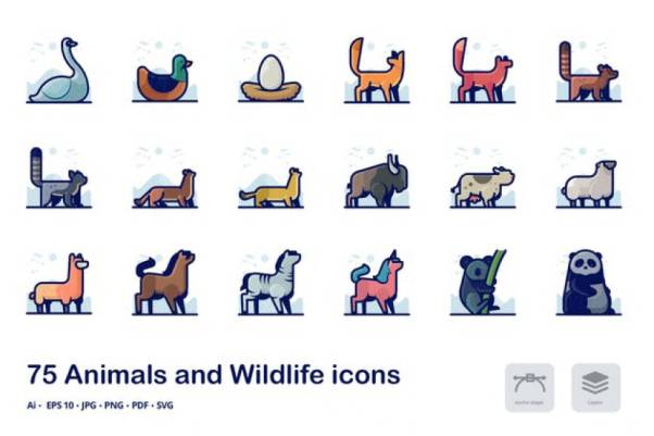 动物世界描边矢量图标合集 Animals Detailed Filled Out