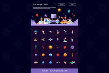 现代扁平设计太空科技主题图标素材 Space – modern flat des