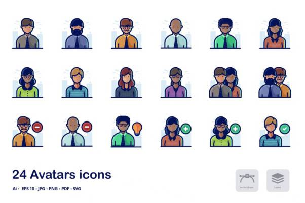 图穷联素材库 » 人物头像概念矢量描边图标合集 Avatars Detailed filled o