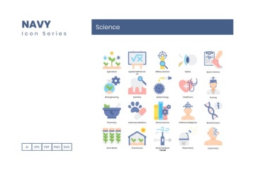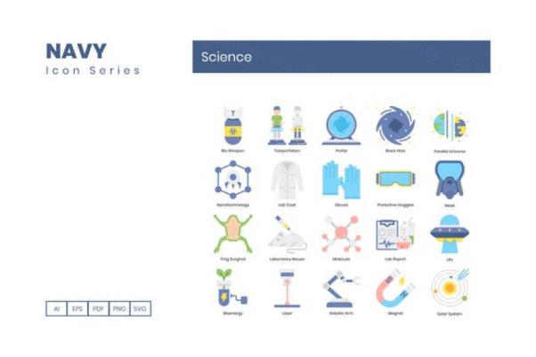 科学技术主题海军蓝图标素材 60 Science Icons Navy Seri