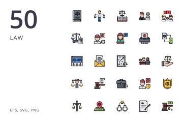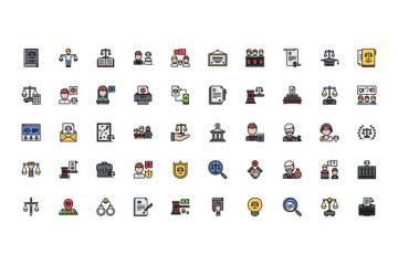 图穷联素材库 » 50枚法律主题彩色线条矢量图标 Law 50