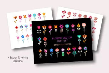 图穷联素材库 » 4组花卉矢量图标合集 4 Option of a Flower Vector I