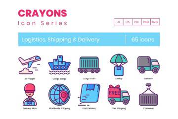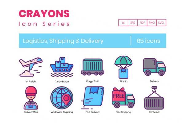 65枚蜡笔手绘物流与航运主题图标 65 Logistics amp;amp; S