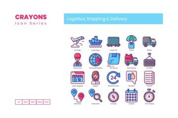 图穷联素材库 » 65枚蜡笔手绘物流与航运主题图标 65 Logistics amp;amp; S