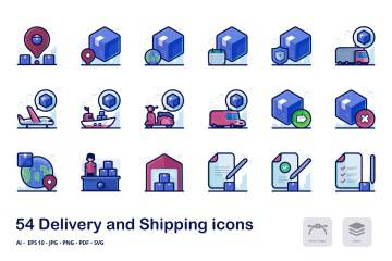 物流运输主题矢量图标集 Delivery and Shipping filled