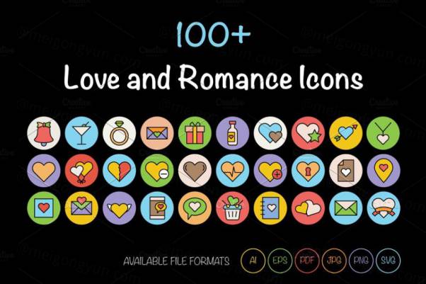图穷联素材库 » 爱情浪漫主题矢量图标 Love and Romance Vector Icon