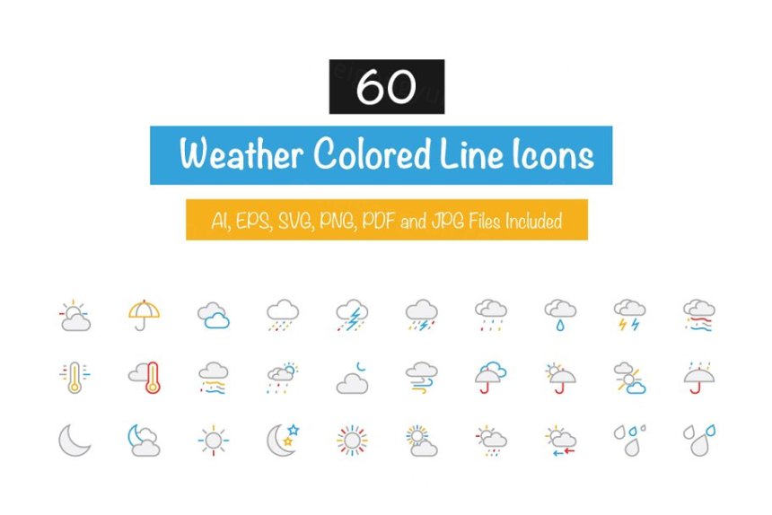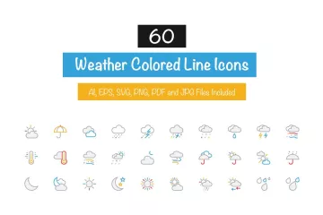 60个天气主题彩色线条图标集