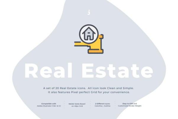 图穷联素材库 » 房地产主题矢量图标合集 20 Real Estate icon set