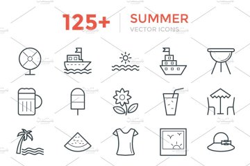 夏季游玩矢量线条图标 125 Summer Vector Icons