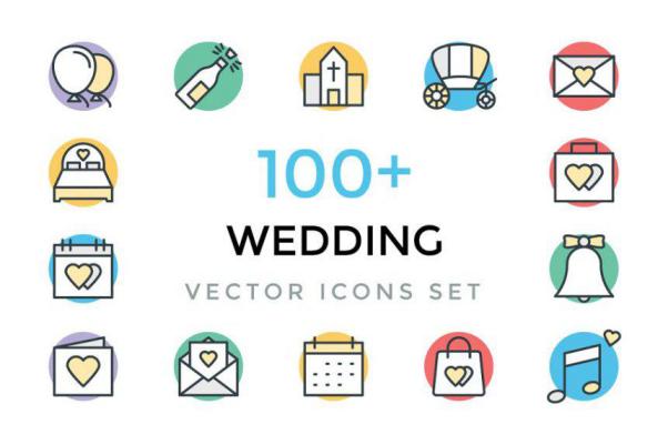 图穷联素材库 » 爱意满满矢量婚礼主题图标 100 Wedding Vector Icons
