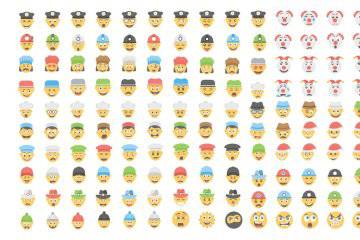 图穷联素材库 » 卡通笑脸平面图标 1000 Flat Smiley Icons