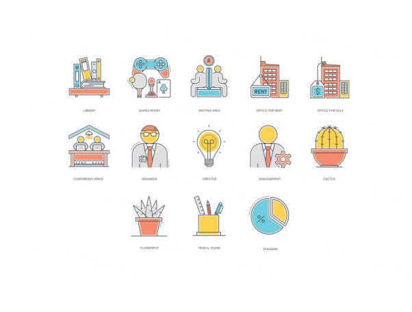 图穷联素材库 » 办公室创意图标套装Office Icons