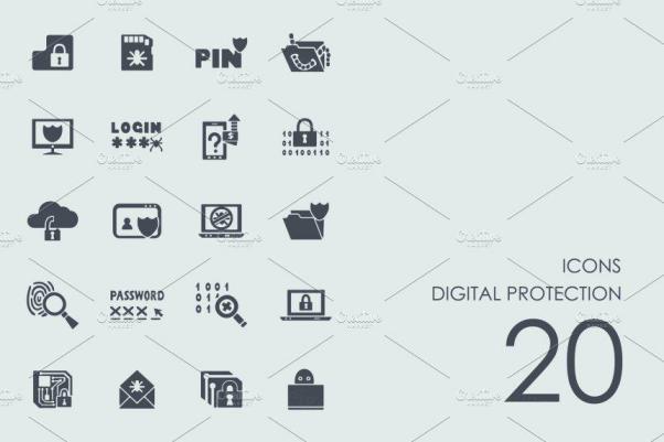 信息数据保护主题简笔画图标合集 Digital protection icons