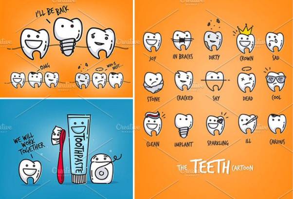 动漫卡通风儿童牙科插图合集 Teeth Graphics