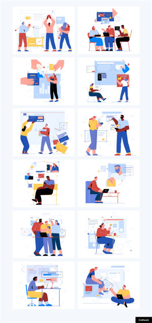 图穷联素材库 » 12组漂亮的团队协作IT场景商业插画素材 Teammates Illustrat