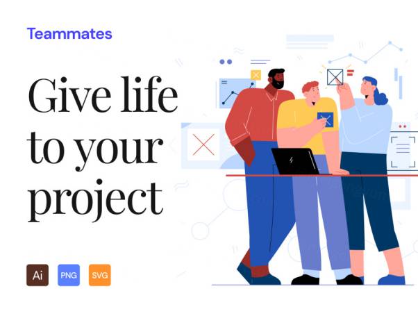 队友是一本全新的包装,其中包含12张平面和时尚的插图。使用这些高详细的业务和IT场景创建漂亮的网站,应用程序和演示文稿。所有插图均为矢量,可轻松自定义。软件包中包含AI,SVG和PNG文件。