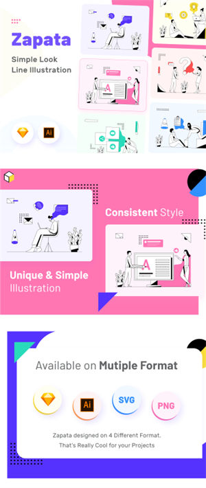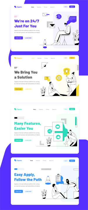 6个精彩的网页APP启动主题商业线条插画素材 Zapata - Simple L