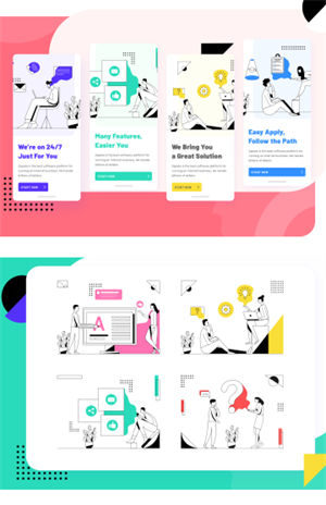 图穷联素材库 » 6个精彩的网页APP启动主题商业线条插画素材 Zapata - Simple L
