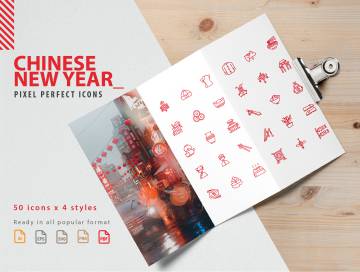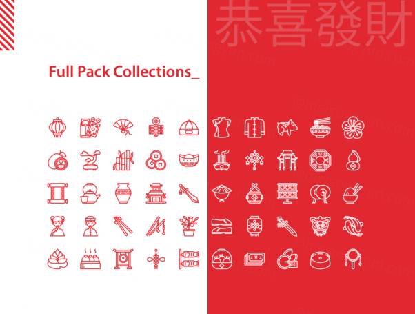 图穷联素材库 » 喜庆的中国新年图标集Chinese New Year Icons Set