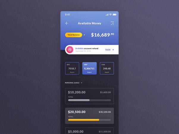 图穷联素材库 » 钱包IOS应用程序PSD Available Money In Wal