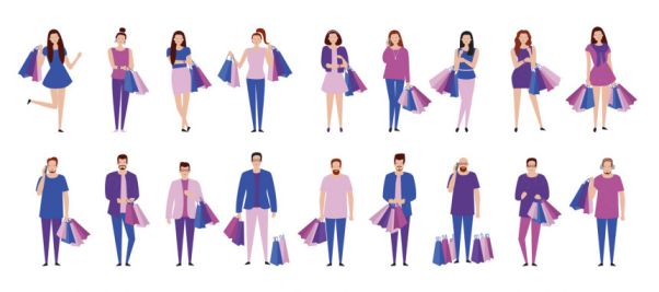 图穷联素材库 » 购物人群平面UI插画人物元素素材合集 Set of character