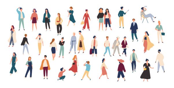 图穷联素材库 » 穿着时尚的年轻男女扁平卡通插图人物素材 Flat colorful v