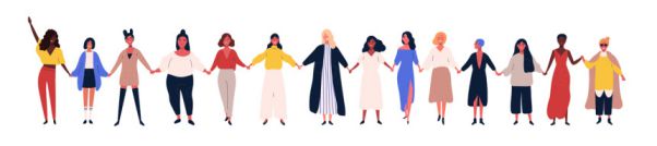 图穷联素材库 » 女权主义姐妹联盟 快乐的女性扁平卡通插图人物素材 Colorful v