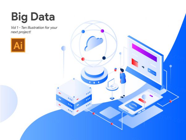 图穷联素材库 » 2.5D 大数据概念插画素材套装Big Data Illustrati