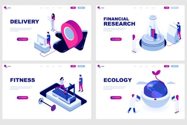 时尚高端流行2.5D等轴等距3D立体区块isometric landi