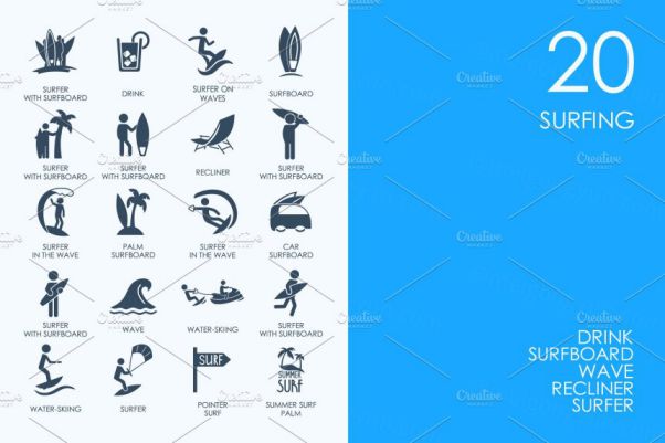 图穷联素材库 » 冲浪相关图标 Surfing icons