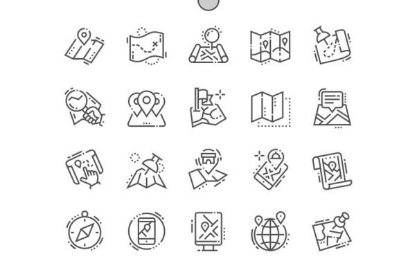 图穷联素材库 » 地图主题的创意图标 Maps Line Icons