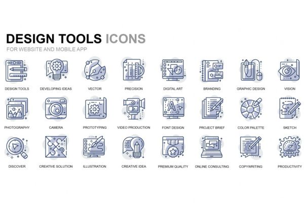 设计工具线性图标矢量素材 Design Tools Thin Line