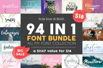 94款漂亮的英文字体下载 94 IN 1 Font Bundle