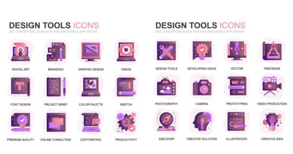图穷联素材库 » 现代扁平化渐变设计风格设计工具主题图标素材modern-set-gra