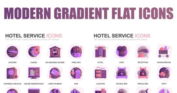 现代扁平化渐变设计风格酒店服务主题图标素材modern-set-gra