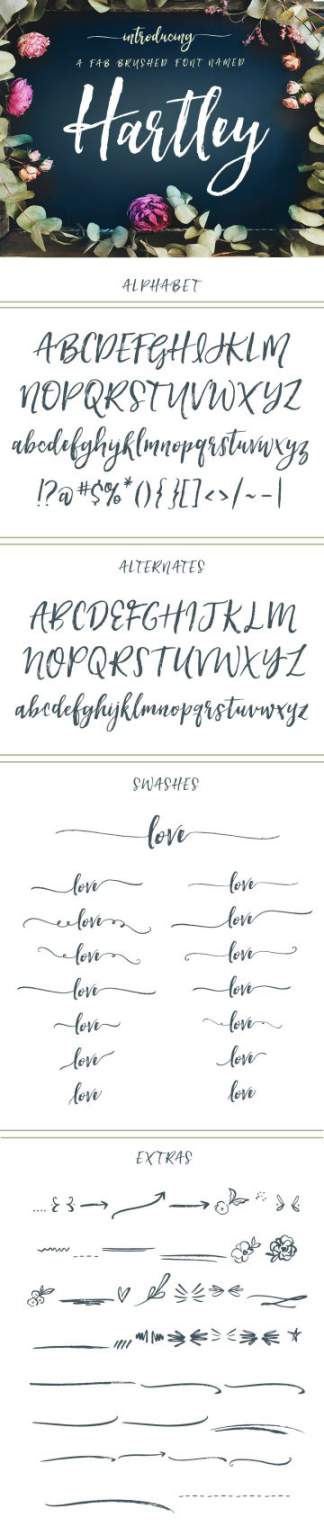 图穷联素材库 » 粗狂的手绘画笔字体 Hartley Rough Brush Script Font