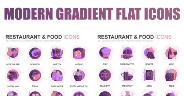 图穷联素材库 » 现代扁平化渐变设计风格美食amp;amp;餐馆主题图标素材